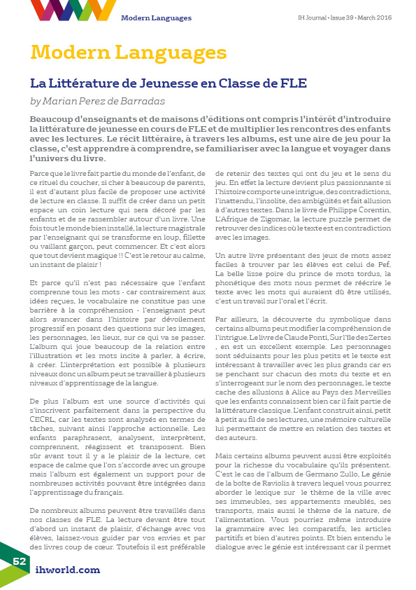 Estamos muy orgullosos de contaros, que el pasado mes de marzo, la revista IH-journal publicó un artículo redactado por nuestra compañera Marian Perez de Barradas, profesora de francés de Lacunza.
