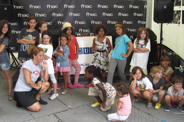 Al mismo tiempo, y en la carpa de Fnac, Rebeca Aranzadi hizo bailar y reir, con su taller de danza-jazz, a niñas y madres, en su mayoría. Coreografías improvisadas y mucha alegría pusieron notas de color y sonrisas a ritmos actuales y valores culturales.