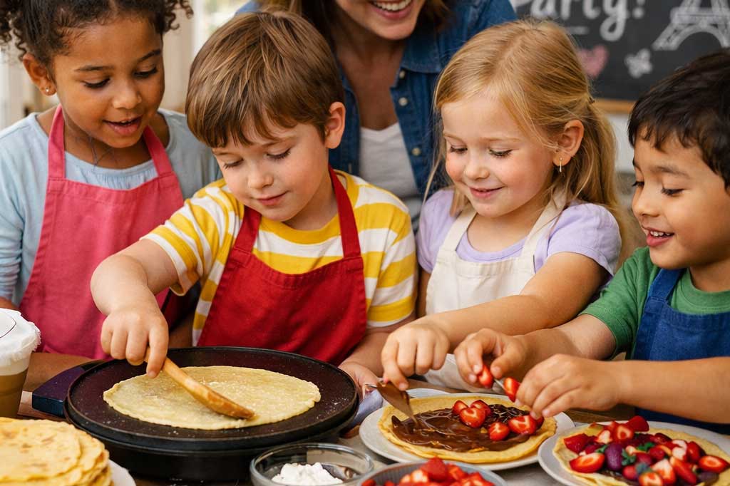 Disfruta del taller de crepes original de Lacunza: una actividad divertida en la que se lo pasan en grande y se acercan al francés de forma natural.
